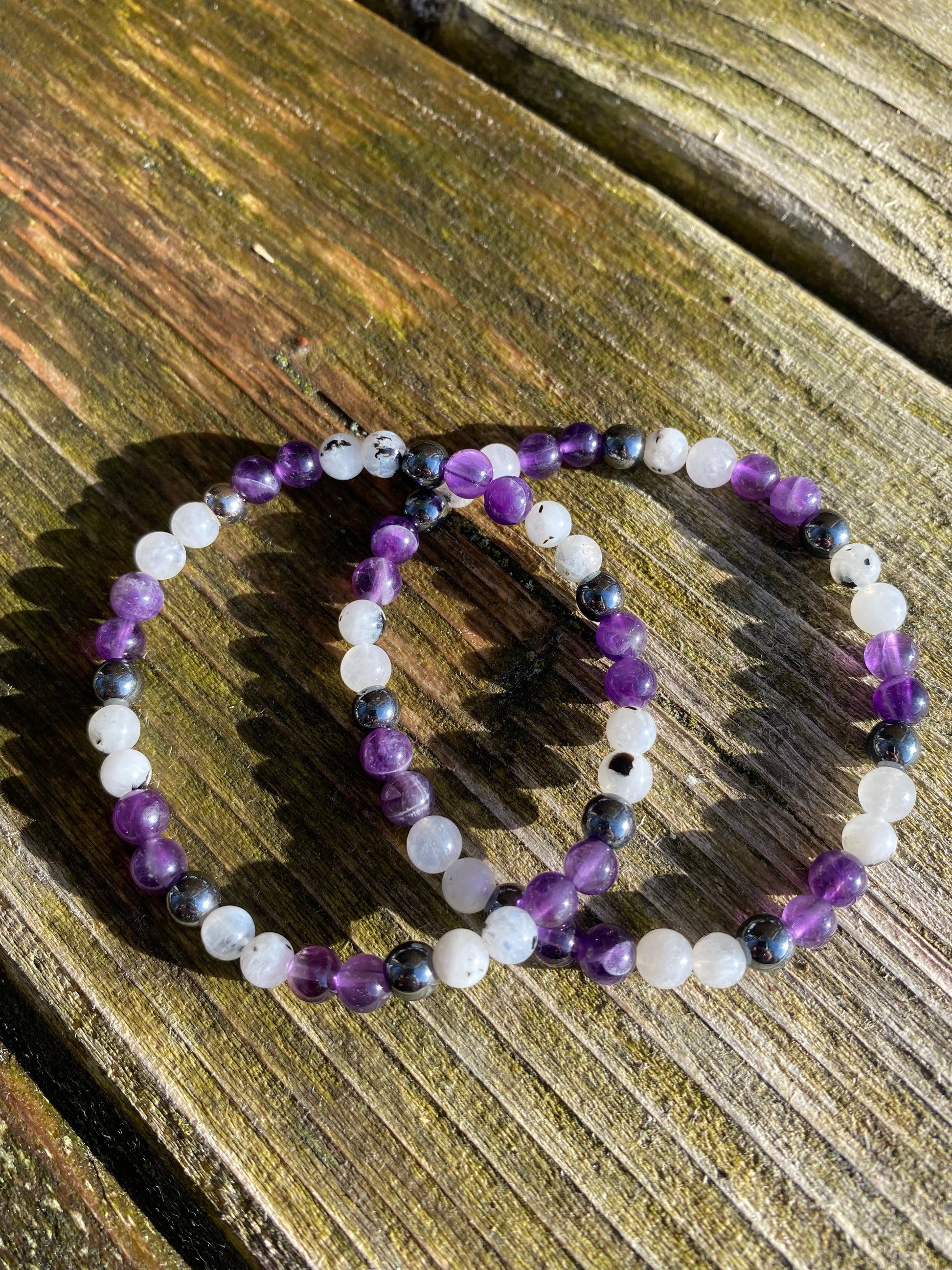 The Amhemoon Bracelet combines the grounding strength of hematite, the calming clarity of amethyst, and the uplifting glow of rainbow moonstone. Thoughtfully crafted, this bracelet offers a meaningful blend of stones designed to enhance your well-being and bring a sense of balance to your day. Wear it as a stylish reminder to stay centered and open to positive energy.